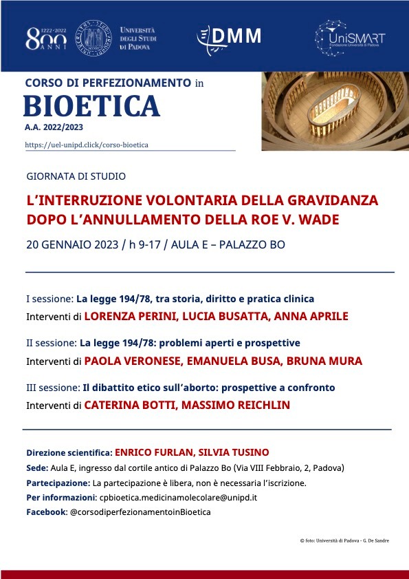 20 gennaio 2023 ore 9-17. Aula E Palazzo Bo, Padova. Partecipazione libera, non è necessaria l'iscrizione.