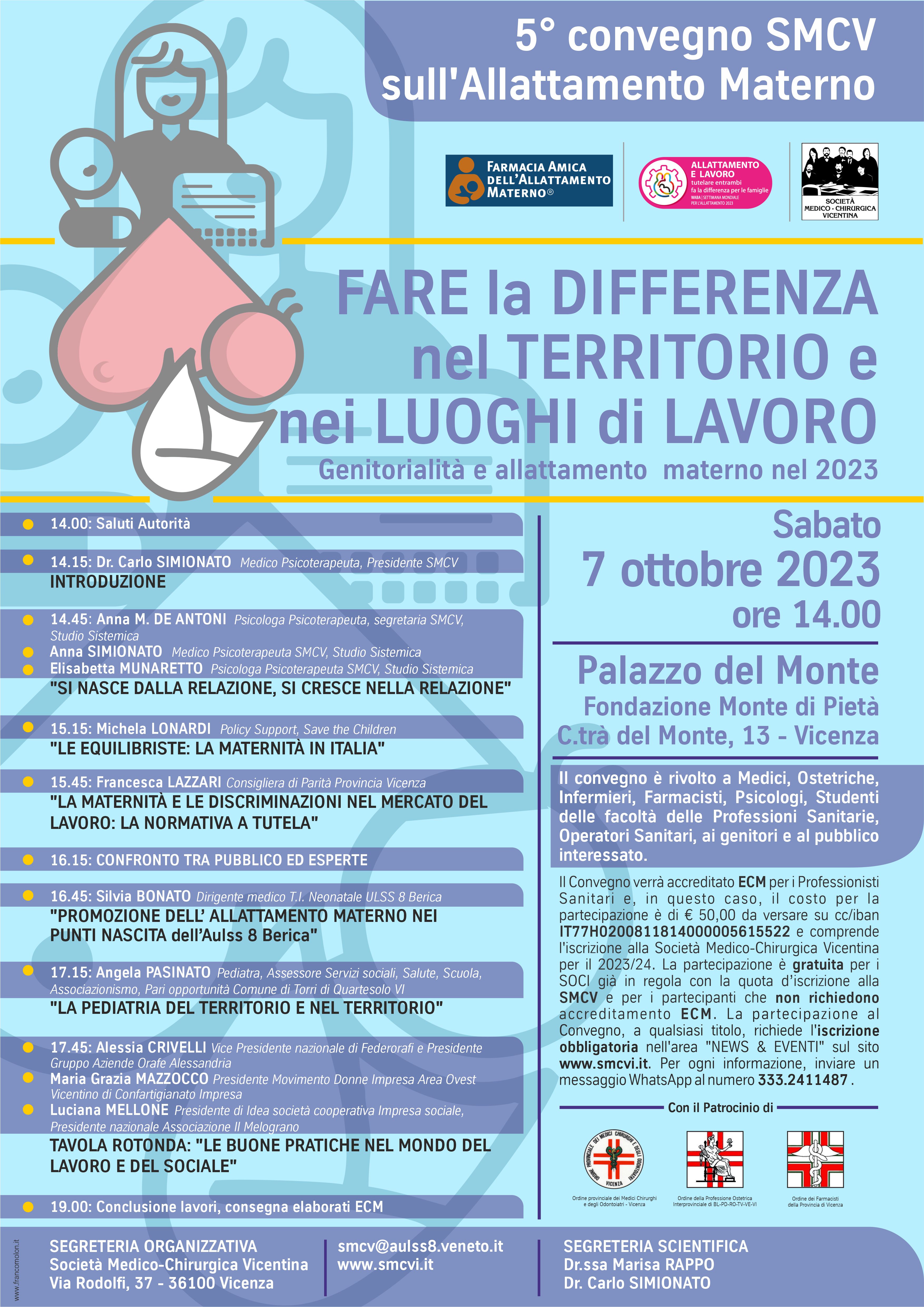 Convegno "Fare la differenze nel territorio e nei luoghi di lavoro" Sabato 7 ottobre 2023 ore 14 Vicenza. Accedi alla image Locandina 5° convegno allattamento 2023(1.69 MB)